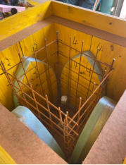 Schalungsbau, Eisenkorb,Stahlbeton, Dachstuhl,Dreifach Lärchendeckung, Malerei/Motive und Fassadenbeschichtung